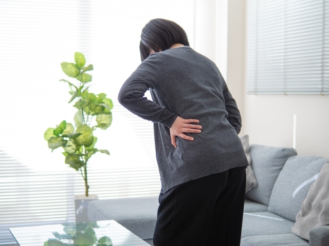 症状が進行すると骨折しやすくなり、特に股関節や背骨、手首の骨折が多くみられます。背骨の圧迫骨折により腰や背中の痛みが生じたり、姿勢が変化したりすることもあります。